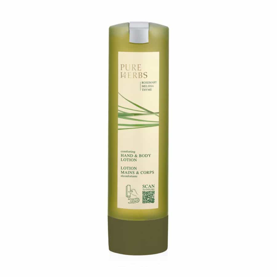 Verwöhnung pur! Die Hand- und Bodylotion enthält wertvolle Wirkstoffe und ist besonders für die tägliche Beauty-Routine geeignet. Versorgen Sie Ihre Haut mit Feuchtigkeit und reichhaltiger Pflege für weiches, geschmeidiges Hautbild. Die Kosmetiklinie PURE HERBS bündelt die natürlich duftenden Kraft der Alpen mit einer Kräuterkomposition aus Rosmarin, Melisse und Thymian. Die harmonisierenden Formulierungen bieten pure Entspannung und versprechen ein natürliches Körperpflegeritual voller verwöhnender Momente. Das zeichnet unsere Pflegeprodukte aus: - Mit revitalisierenden Melisse, Thymian und Rosmarin- Aromatische Kräuternoten- Hygienischer Aluminiumverschluss mit integrierter Versiegelung- Recyclingfähige Verpackung- Große Auswahl an Accessoires.